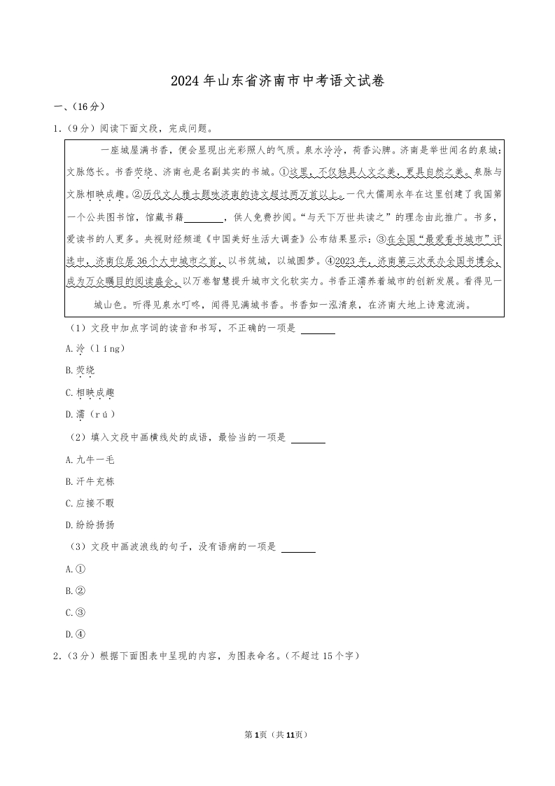 首页班主任库比赛竞赛2024年山东省济南市中考语文试卷