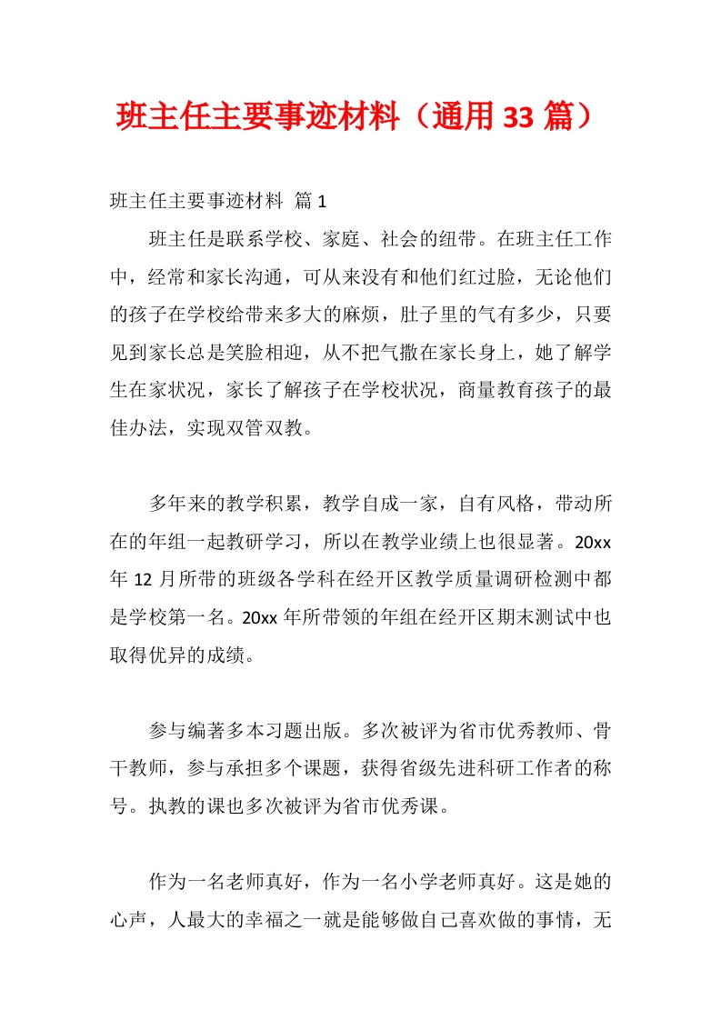 首页班主任库工作总结班主任主要事迹材料(通用33篇)