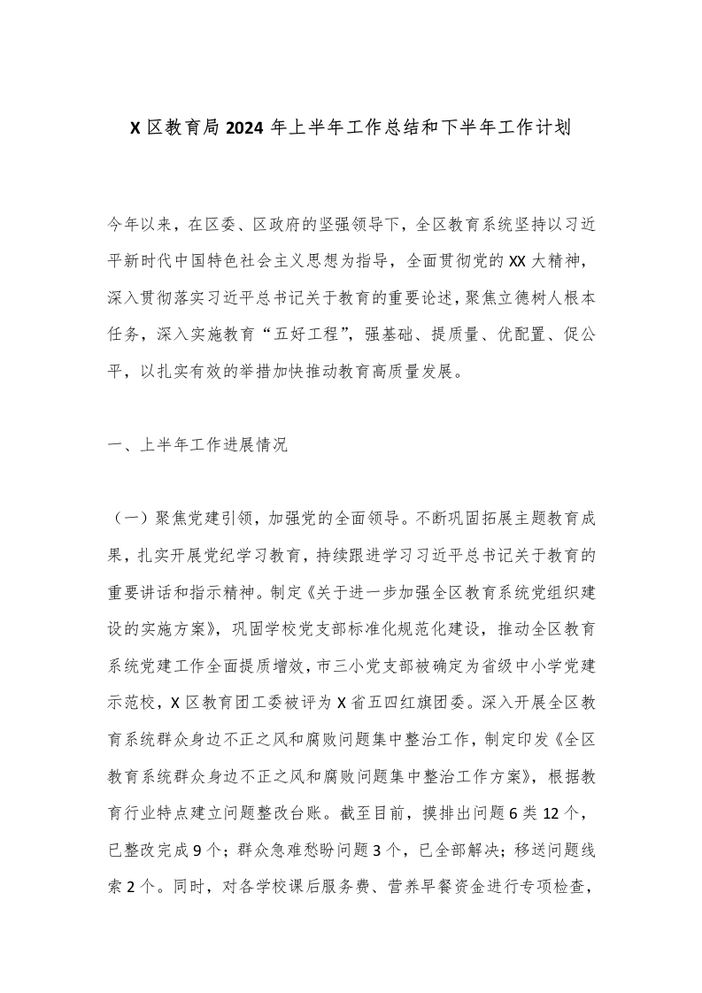 首页少先队库工作总结X区教育局2024年上半年工作总结和下半年工作计划