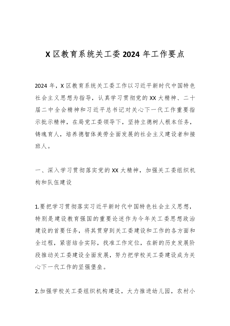 X区教育系统关工委2024年工作要点