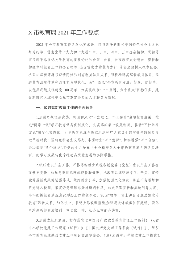 X市教育局2021年工作要点