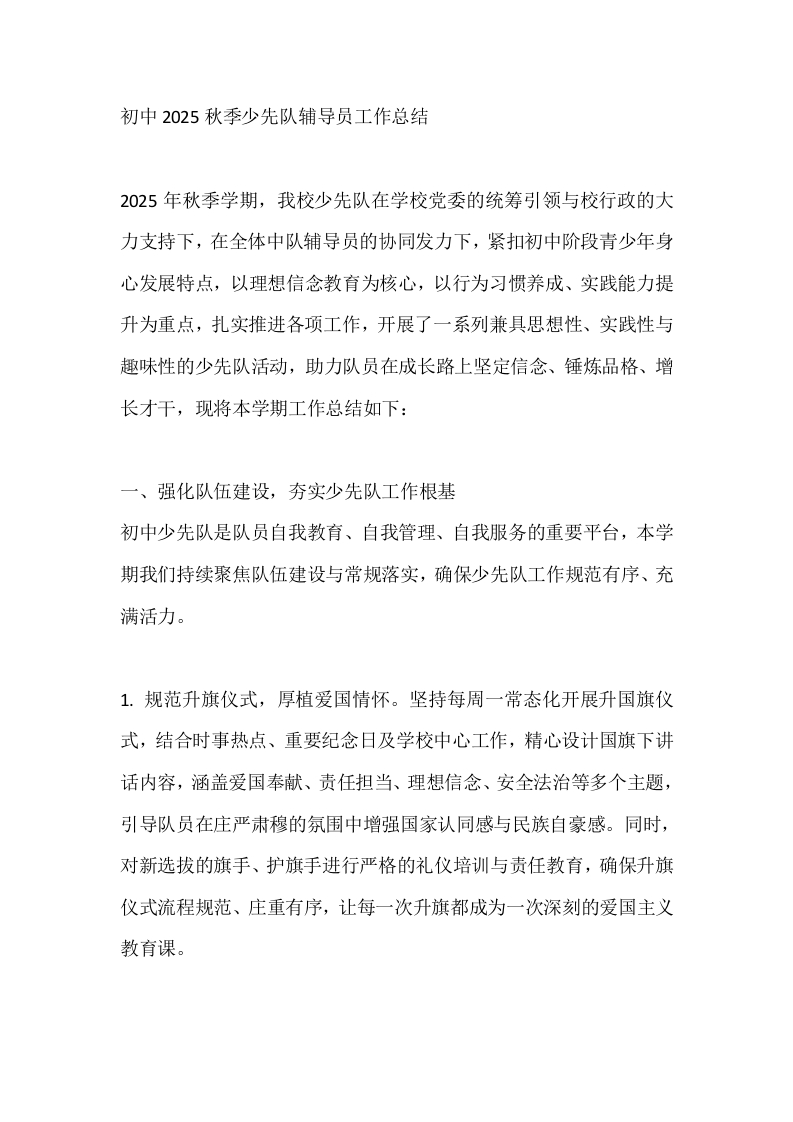 首页少先队库工作总结初中2025秋季少先队辅导员工作总结