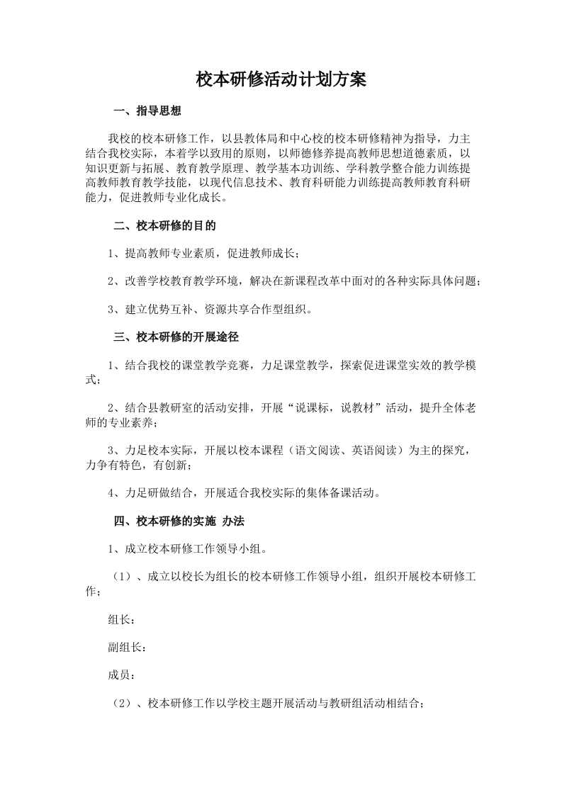 校本研修活动计划方案