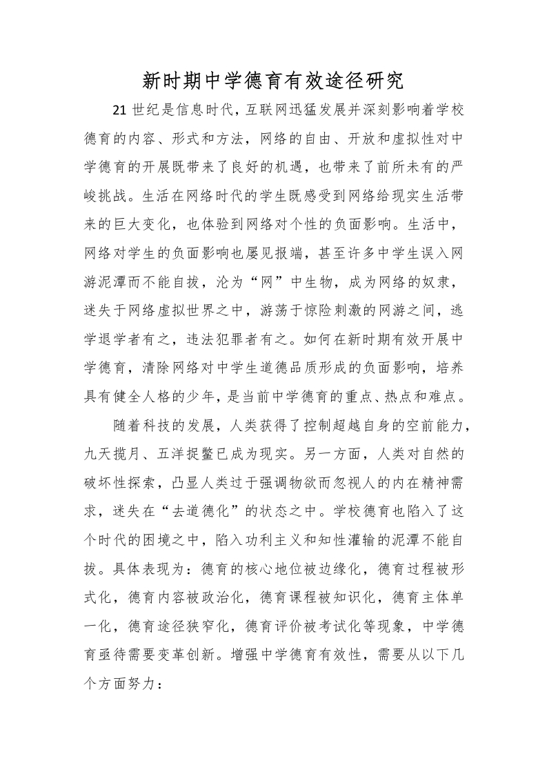 新时期中学德育有效途径研究