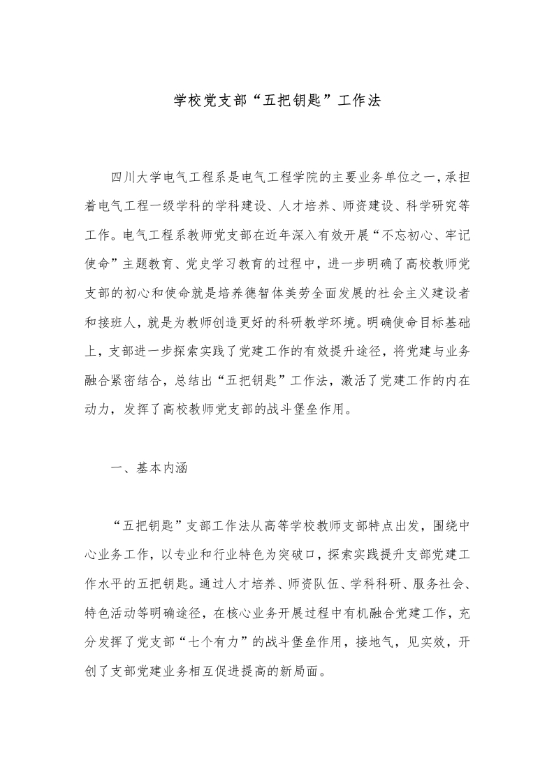 首页教研资料校本研修学校党支部“五把钥匙”工作法