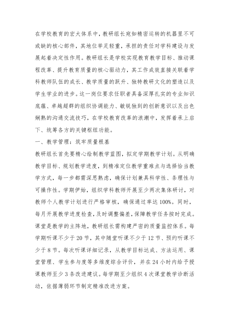首页教研资料校本研修学校教研组长职责及量化细则(2025年修订)