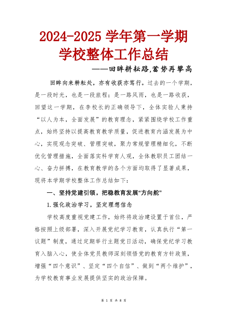 回眸耕耘路,蓄势再攀高——2024-2025学年第一学期学校整体工作总结