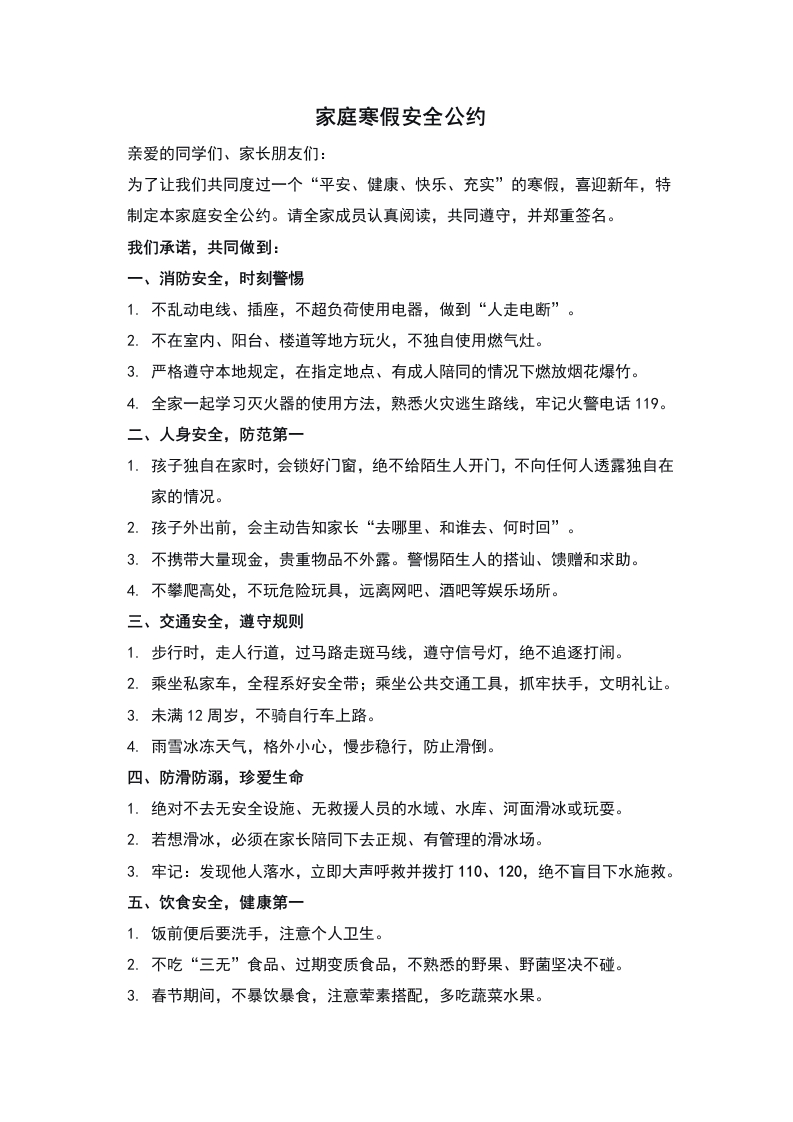 《家庭寒假安全公约》