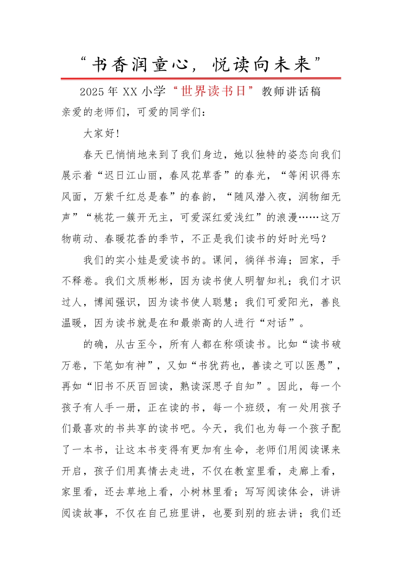 首页综合资料书香校园4.世界读书日活动教师发言稿