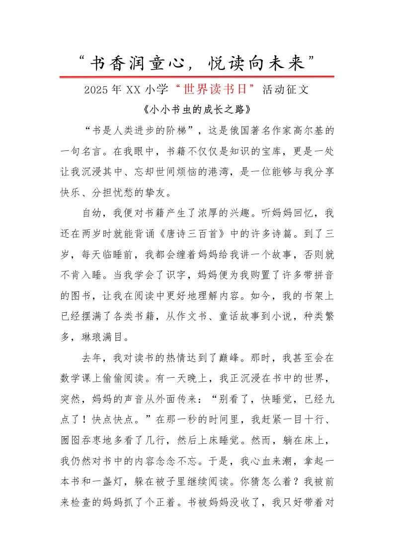 首页综合资料书香校园7.世界读书日活动征文