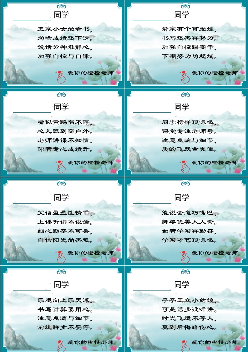 首页班务PPT综合PPT02【打油诗】72则创意期末评语PPT-每页8张