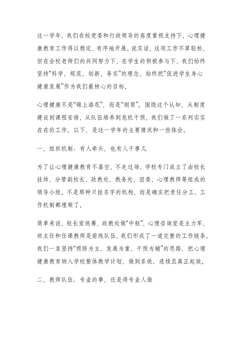 学校心理健康教育工作总结: 效果很好,没有心理变态的!