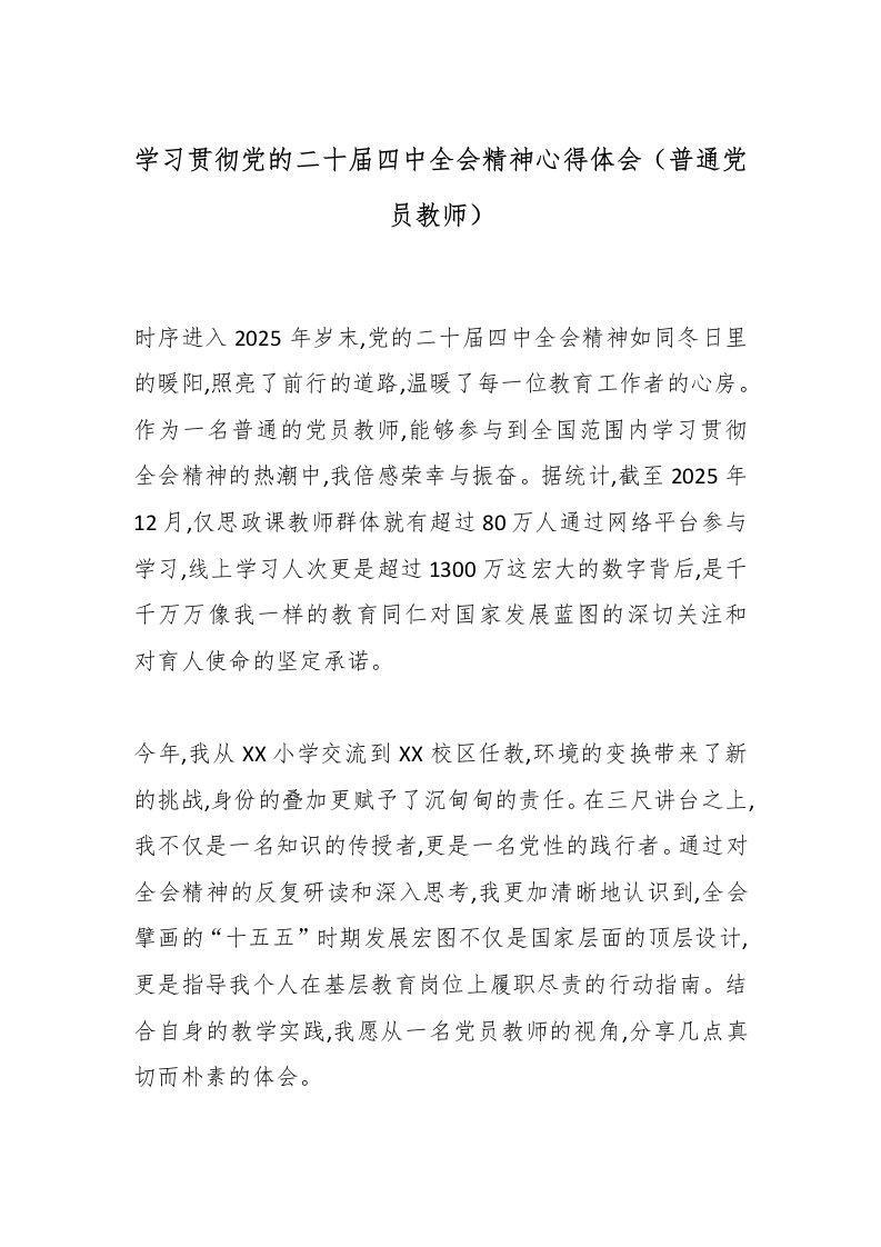 学习贯彻党的二十届四中全会精神心得体会(普通党员教师)