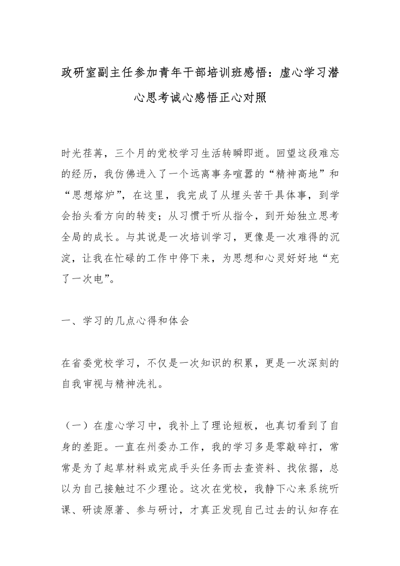 政研室副主任参加青年干部培训班感悟:虚心学习潜心思考诚心感悟正心对照