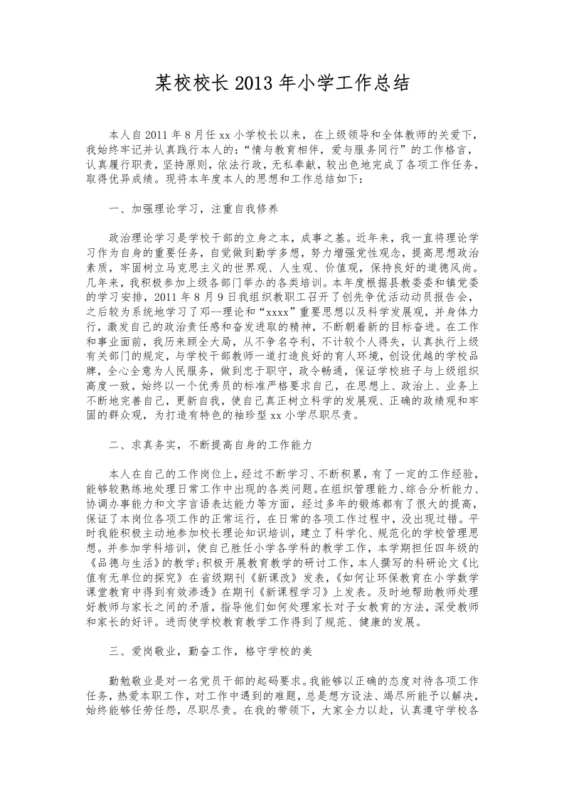 316-某校校长小学工作总结