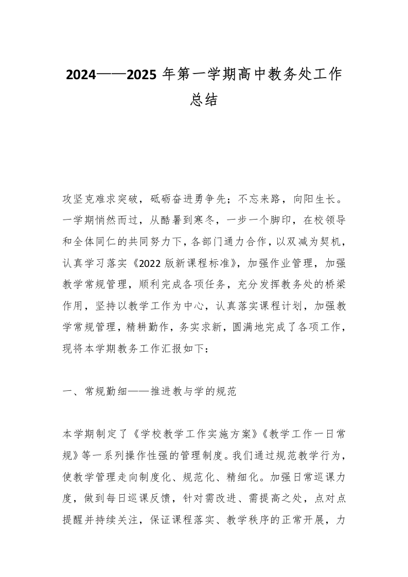 首页学校教务职责制度2024——2025年第一学期高中教务处工作总结
