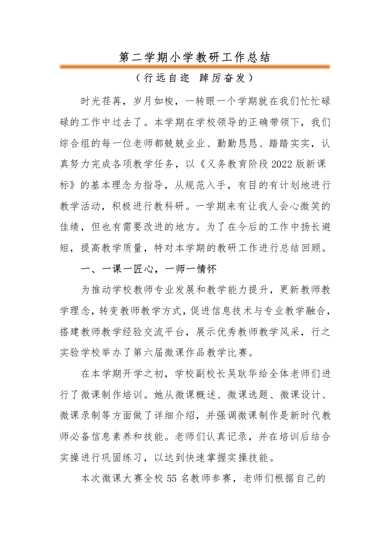 首页学校教务职责制度第二学期小学教研工作总结