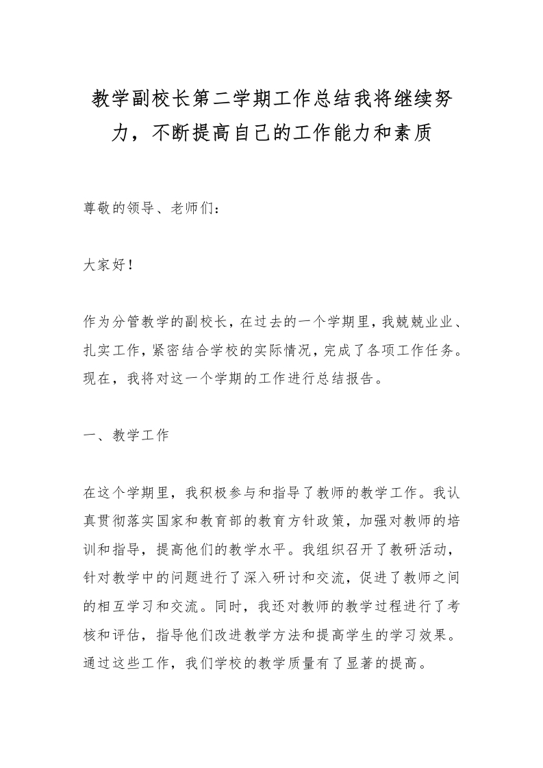 教学副校长第二学期工作总结我将继续努力,不断提高自己的工作能力和素质