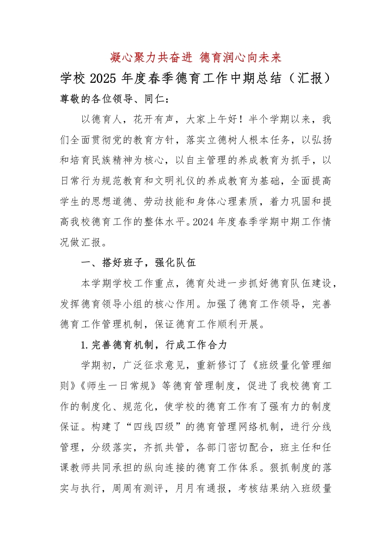 首页学校教务职责制度学校2025年度春季德育工作中期总结(汇报)