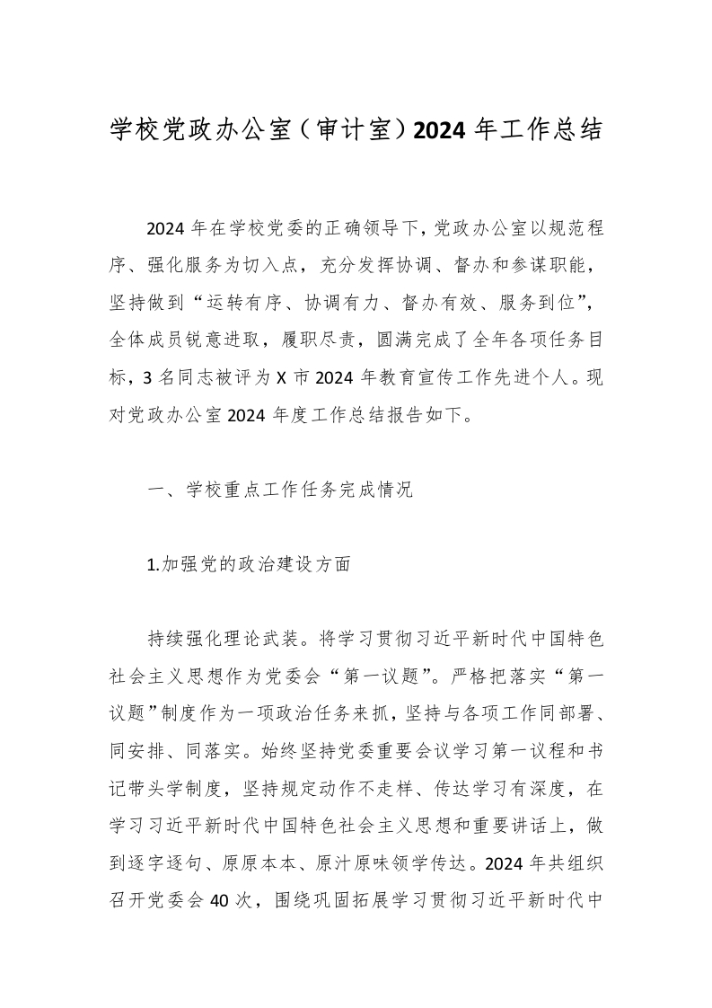首页学校教务职责制度学校党政办公室(审计室)2024年工作总结