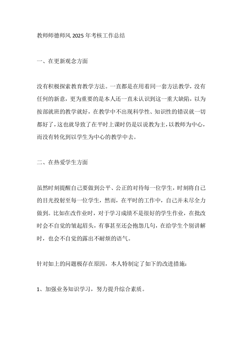 教师师德师风2025年考核工作总结