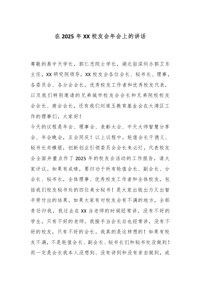 在2025年XX校友会年会上的讲话