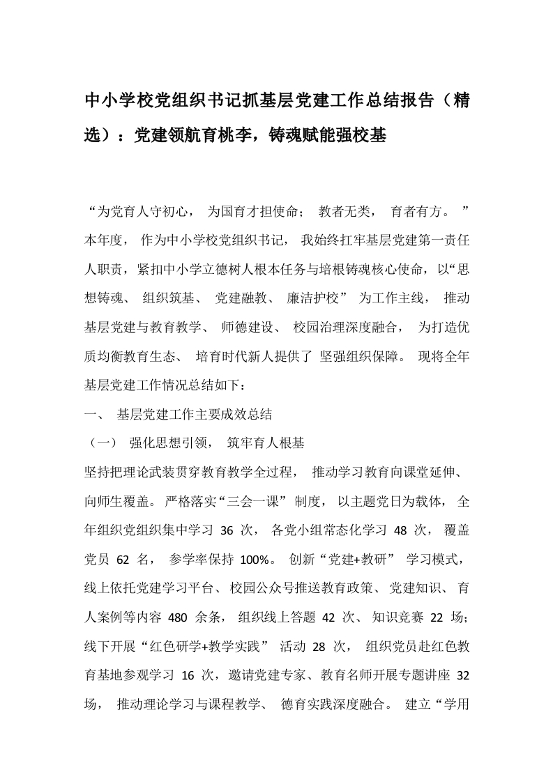 中小学校党组织书记抓基层党建工作总结报告(精选):党建领航育桃李,铸魂赋能强校基