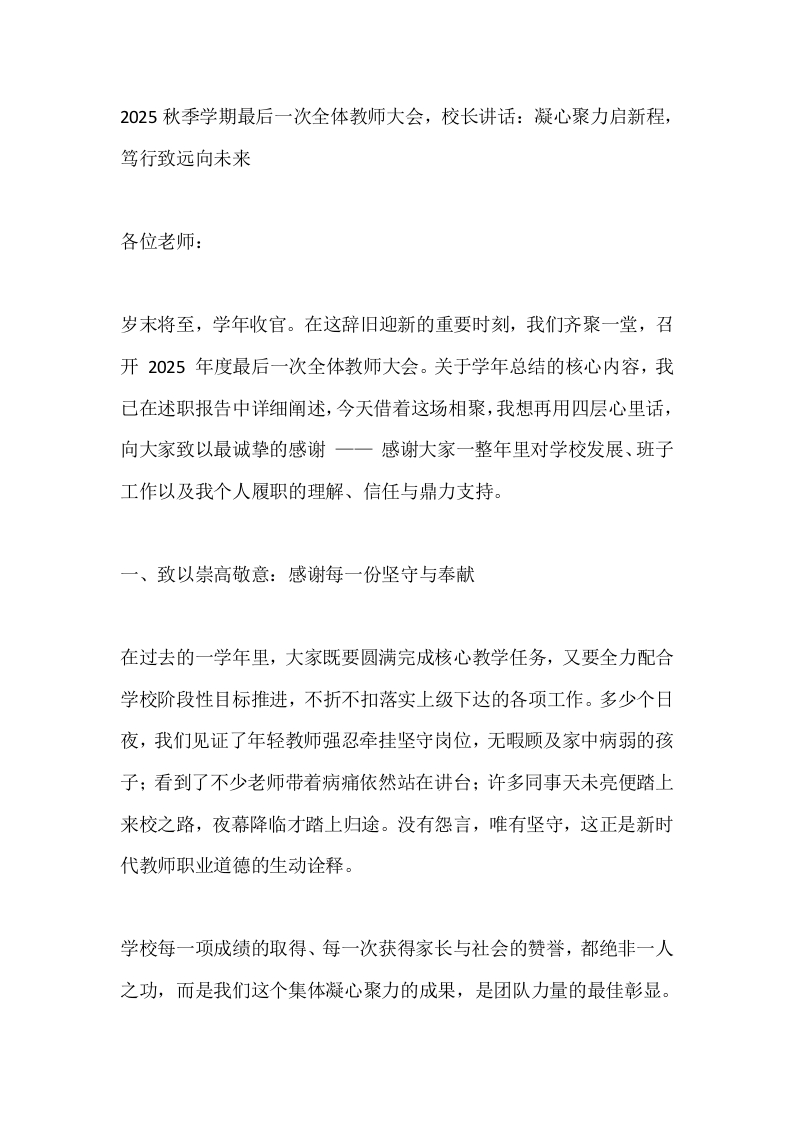 2025秋季学期最后一次全体教师大会,校长讲话:凝心聚力启新程,笃行致远向未来