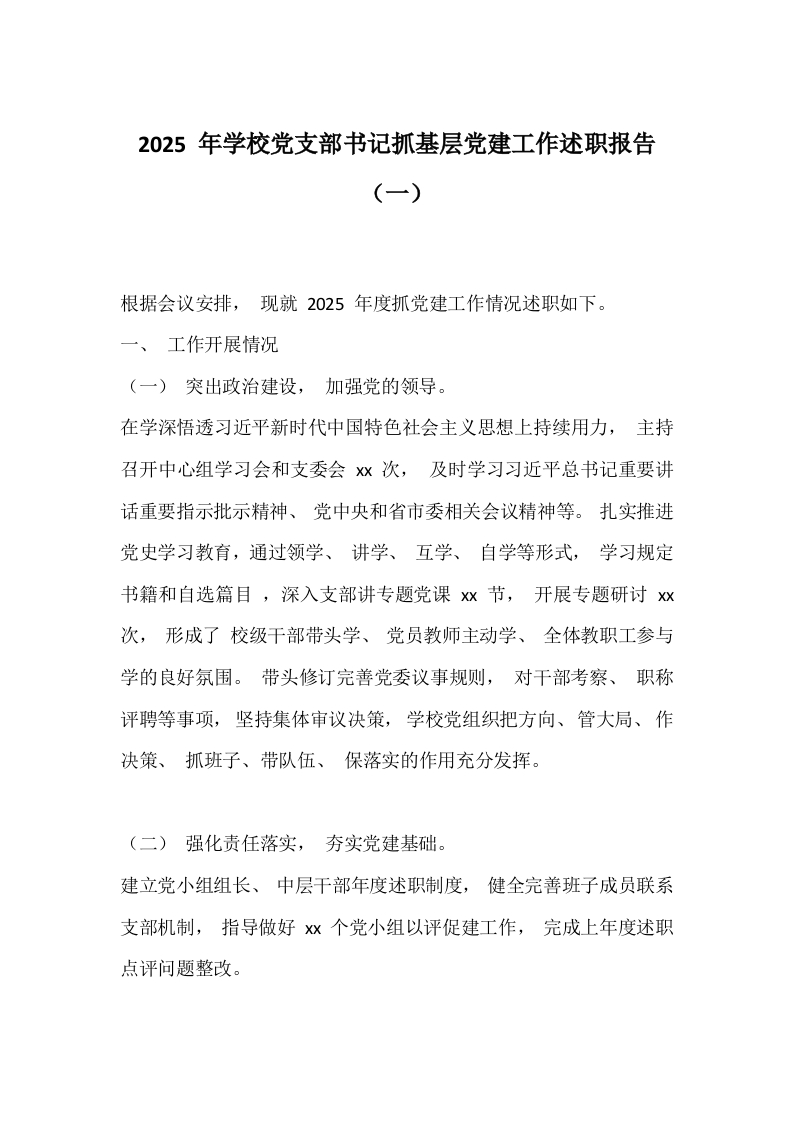 首页党建资料党课党建2025 年学校党支部书记抓基层党建工作述职报告(一)