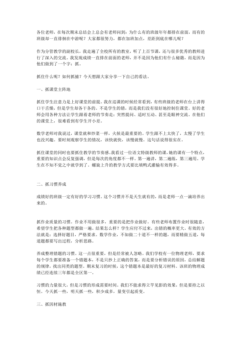 提高教学质量,教学副校长讲话:稳居第一就是一个字:抓!