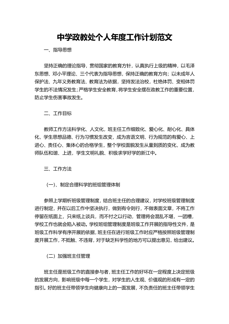 160-中学政教处个人年度工作计划范文