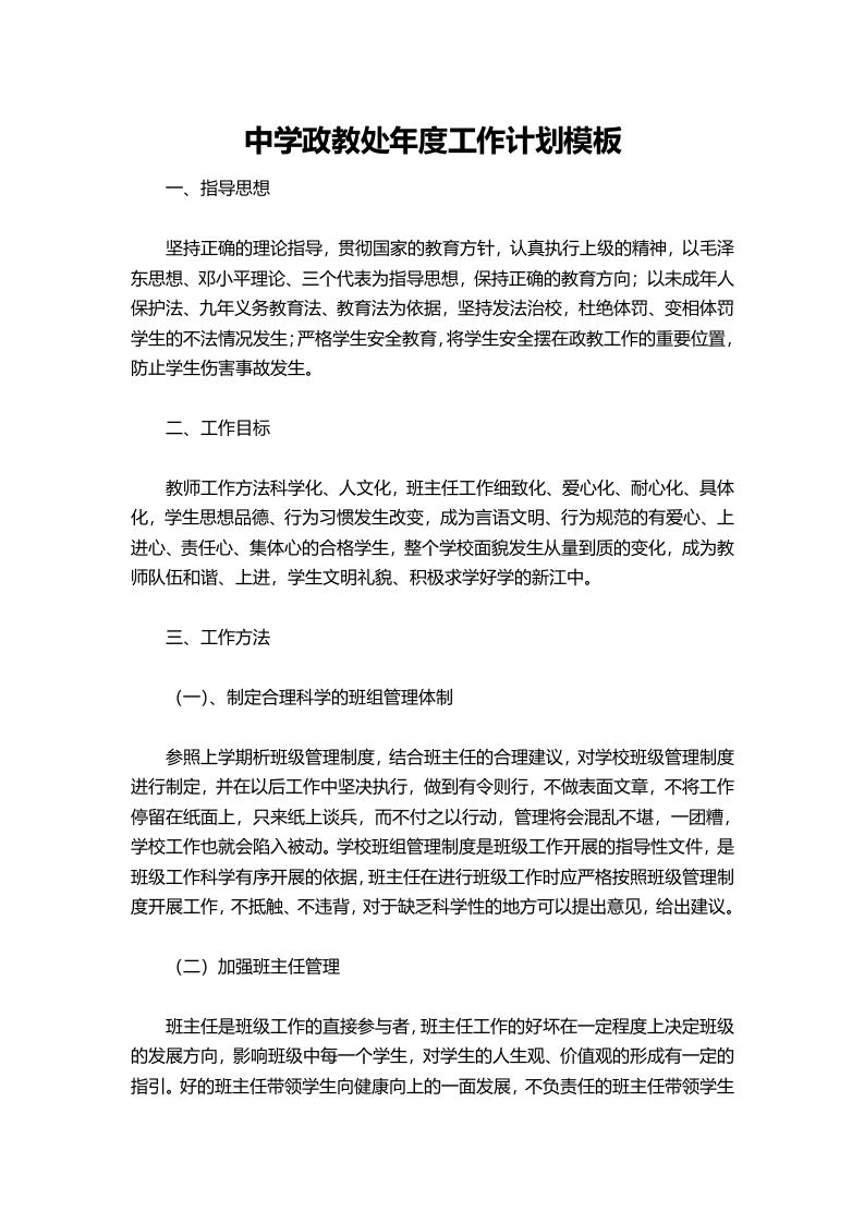 180-中学政教处年度工作计划模板