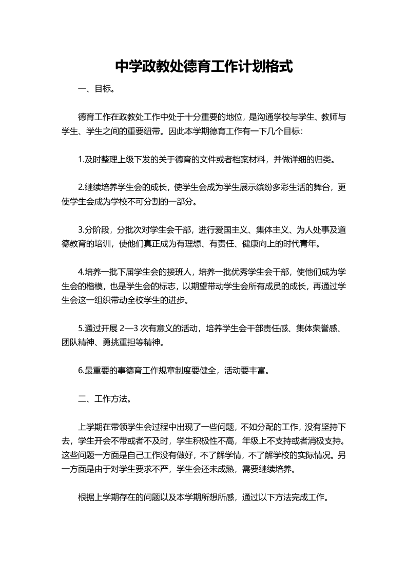 185-中学政教处德育工作计划