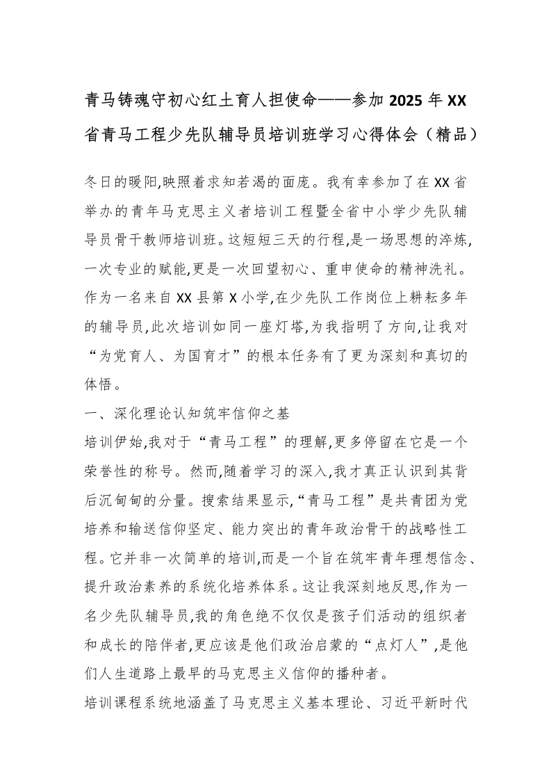 青马铸魂守初心红土育人担使命——参加2025年XX省青马工程少先队辅导员培训班学习心得体会(精品)