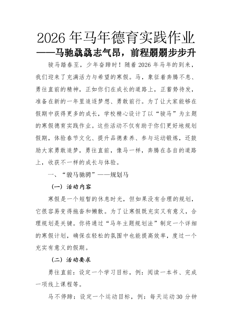 2026年马年德育实践作业——马驰骉骉志气昂,前程朤朤步步升