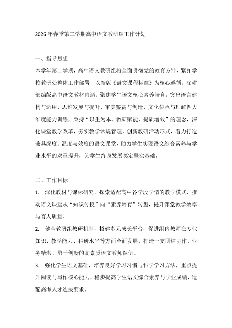 首页教研资料教研计划2026年春季第二学期高中语文教研组工作计划