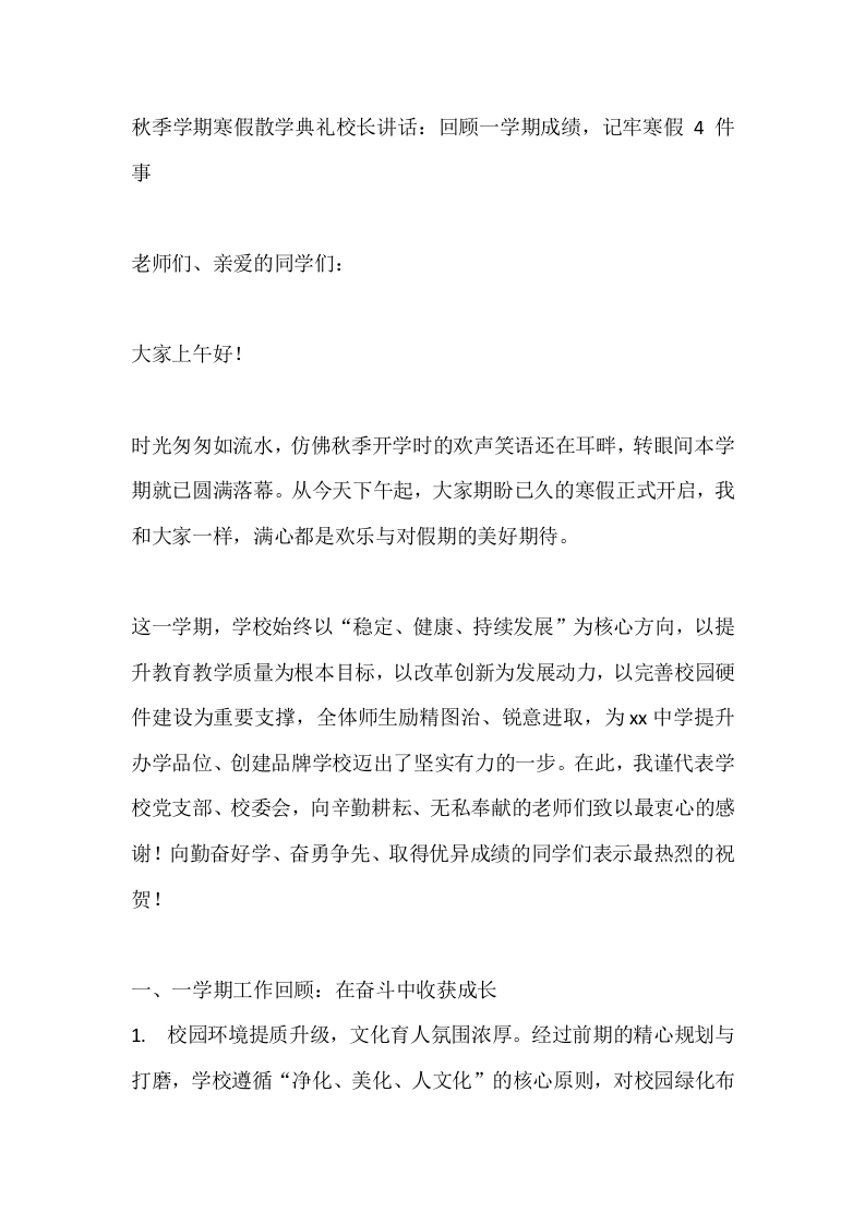 秋季学期寒假散学典礼校长讲话:回顾一学期成绩,记牢寒假 4 件事