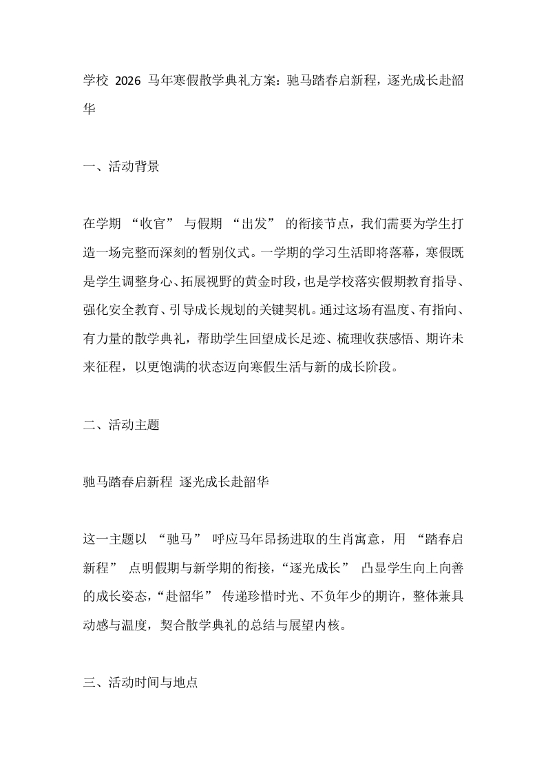 学校 2026 马年寒假散学典礼方案:驰马踏春启新程,逐光成长赴韶华