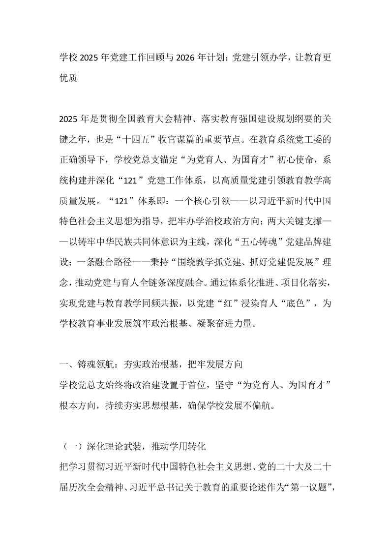首页党建资料计划总结学校2025年党建工作回顾与2026年计划:党建引领办学,让教育更优质