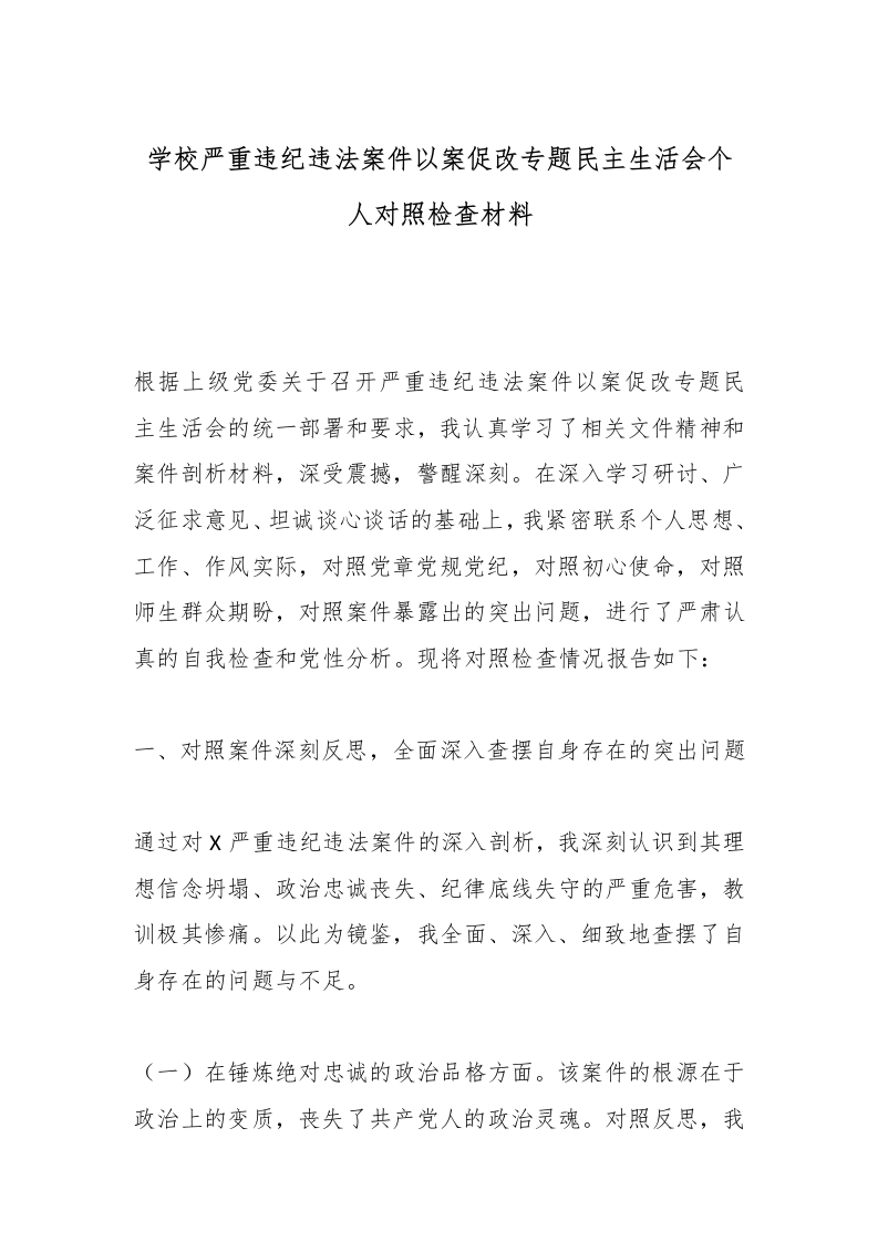 首页党建资料党课党建学校严重违纪违法案件以案促改专题民主生活会个人对照检查材料