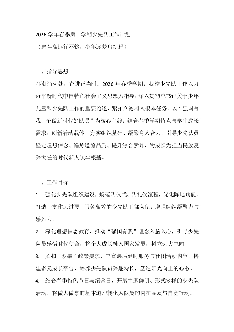 首页少先队库工作总结2026学年春季第二学期少先队工作计划