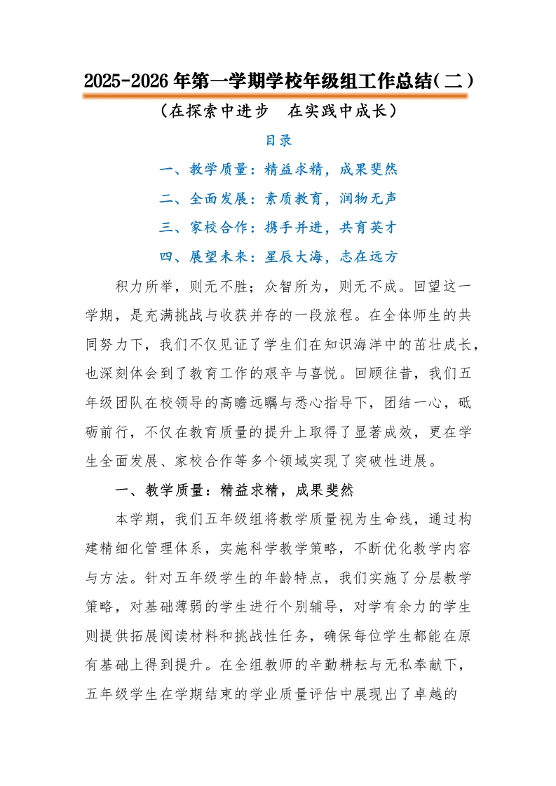 2025-2026年第一学期学校年级组工作总结(二):在探索中进步,在实践中成长