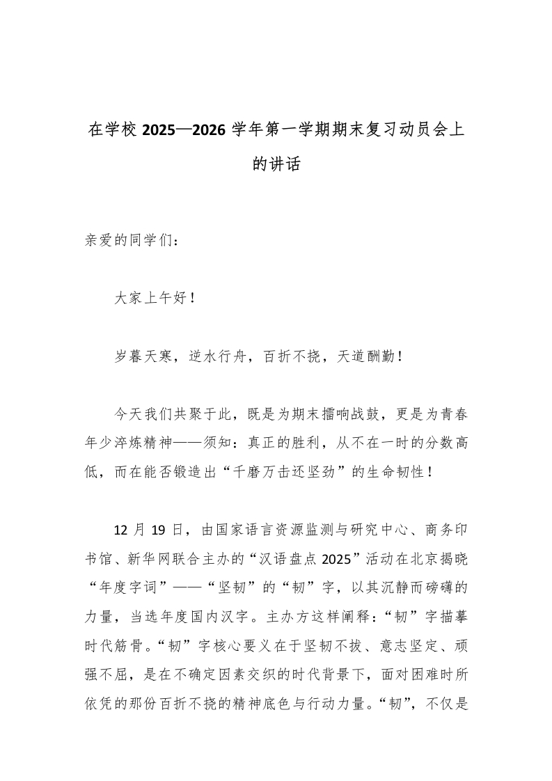 首页热门资源学校活动在学校2025—2026学年第一学期期末复习动员会上的讲话