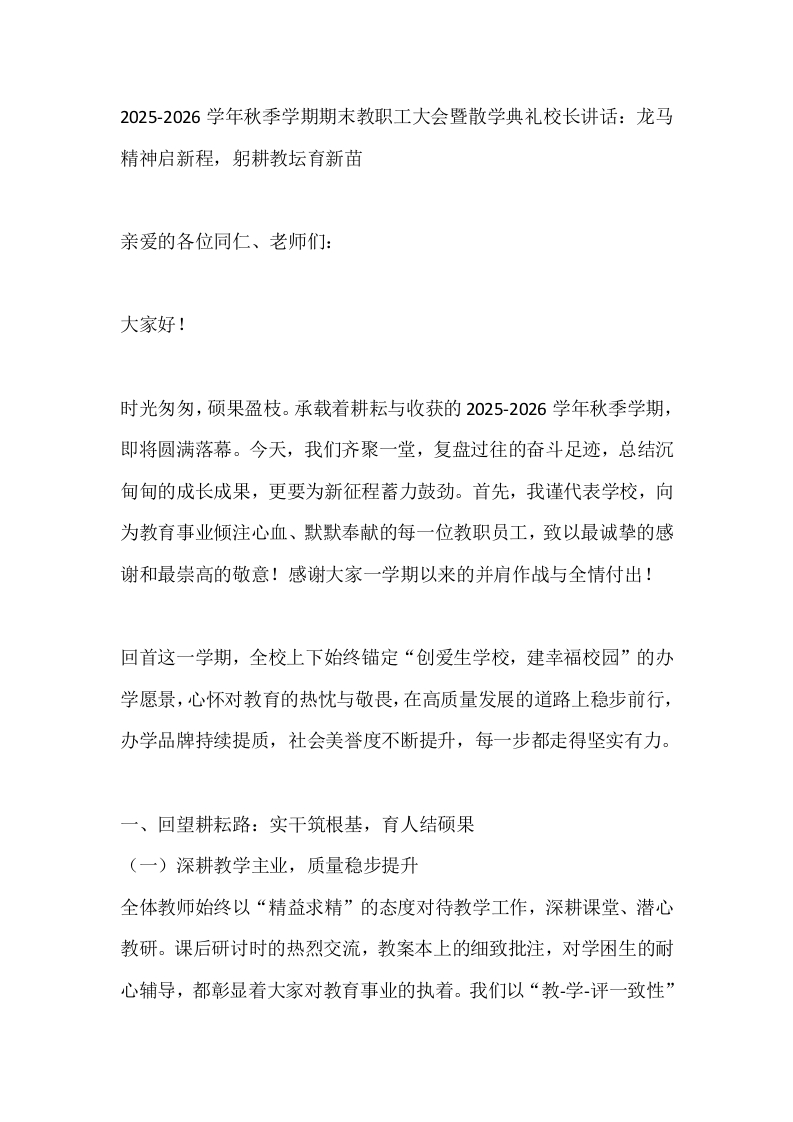 2025-2026学年秋季学期期末教职工大会暨散学典礼校长讲话:龙马精神启新程,躬耕教坛育新苗