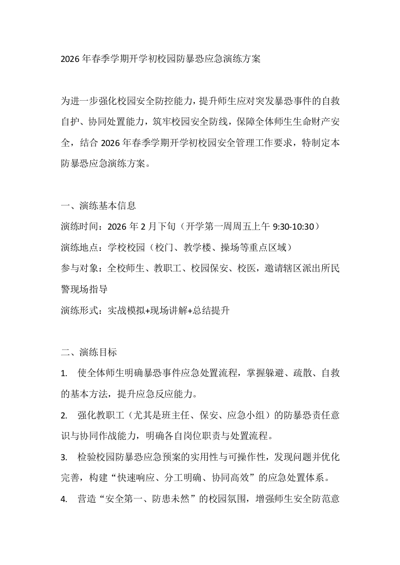 首页学校教务计划总结2026年春季学期开学初校园防暴恐应急演练方案