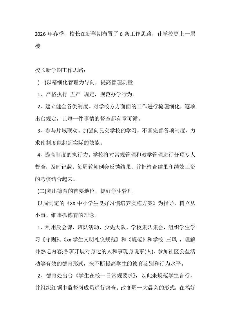 2026年春季,校长在新学期布置了6条工作思路,让学校更上一层楼