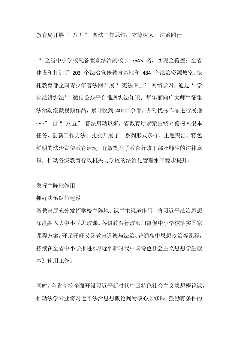 教育局开展“ 八五” 普法工作总结:立德树人,法治同行