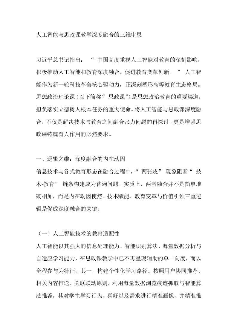 首页党建资料党课党建人工智能与思政课教学深度融合的三维审思