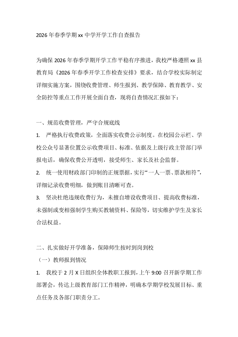 首页综合资料其它资料2026年春季学期xx中学开学工作自查报告