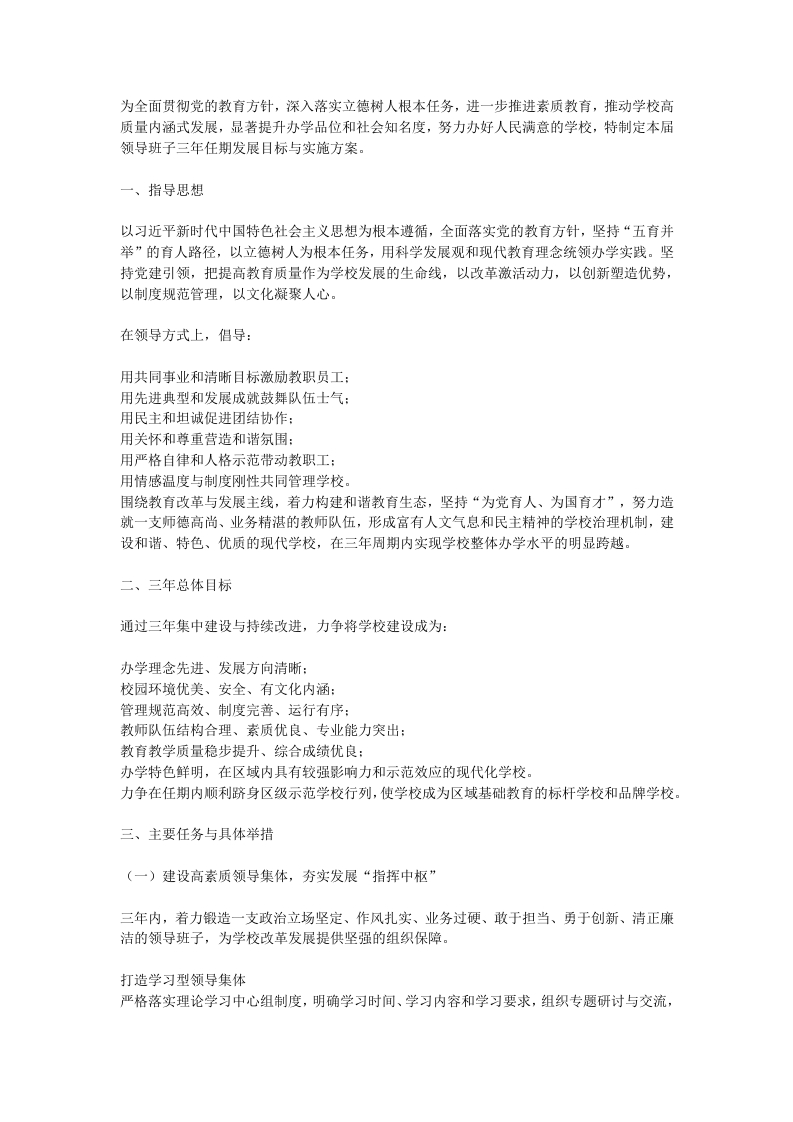 X学校领导班子三年任期目标